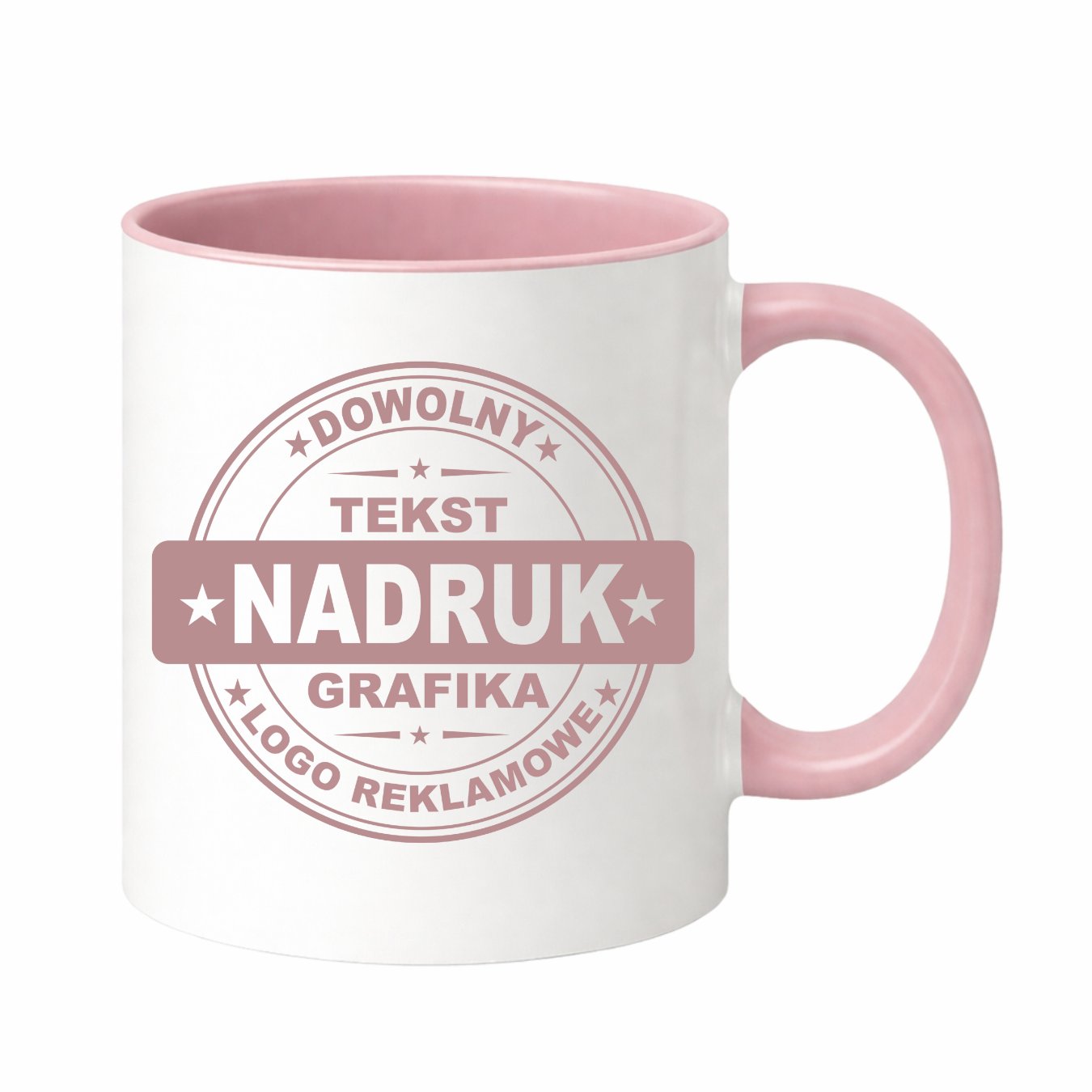Kubki reklamowe – białe z różowym wnętrzem i uchem, 330 ml