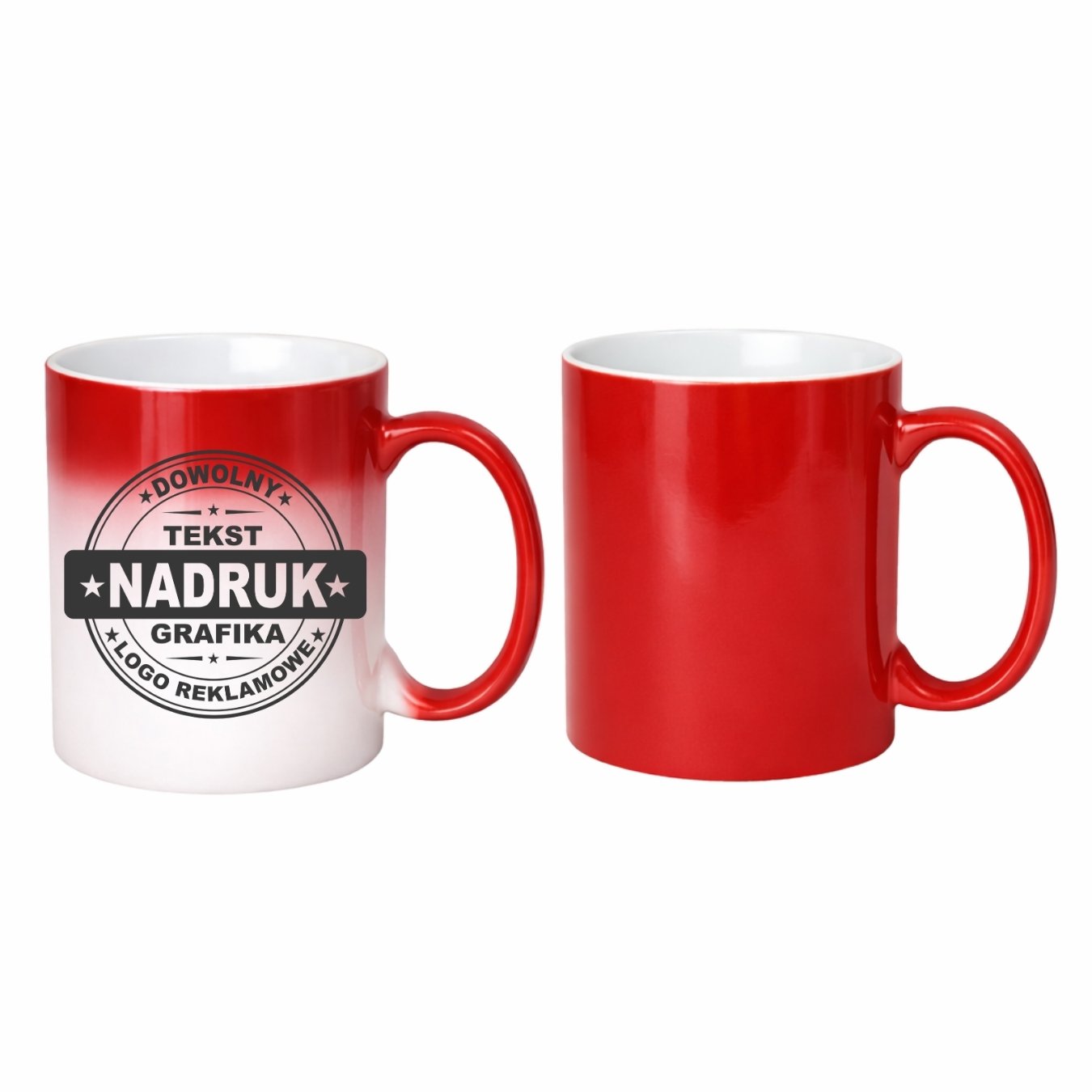 Kubki reklamowe czerwony matowy – magiczne, 330 ml